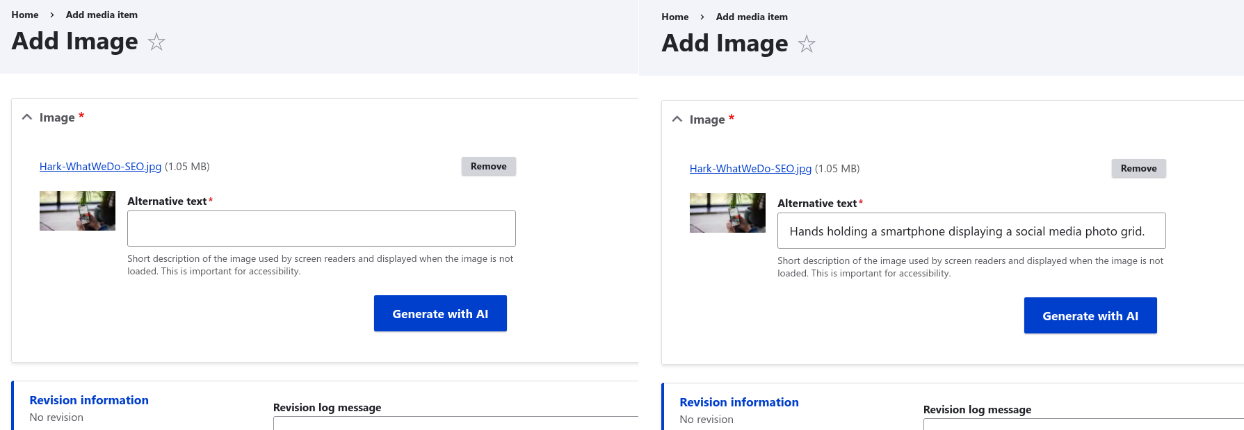 Alt text is important for both SEO and accessibility, but writing alt text isn’t most peoples’ idea of fun. Often it’s tricky to describe an image in words, so editors insert an alt tag that is too vague, not useful (e.g. the filename of the image), or they just leave it blank. The AI Image Alt Tag module can automatically generate descriptive alt text for images as they’re uploaded.